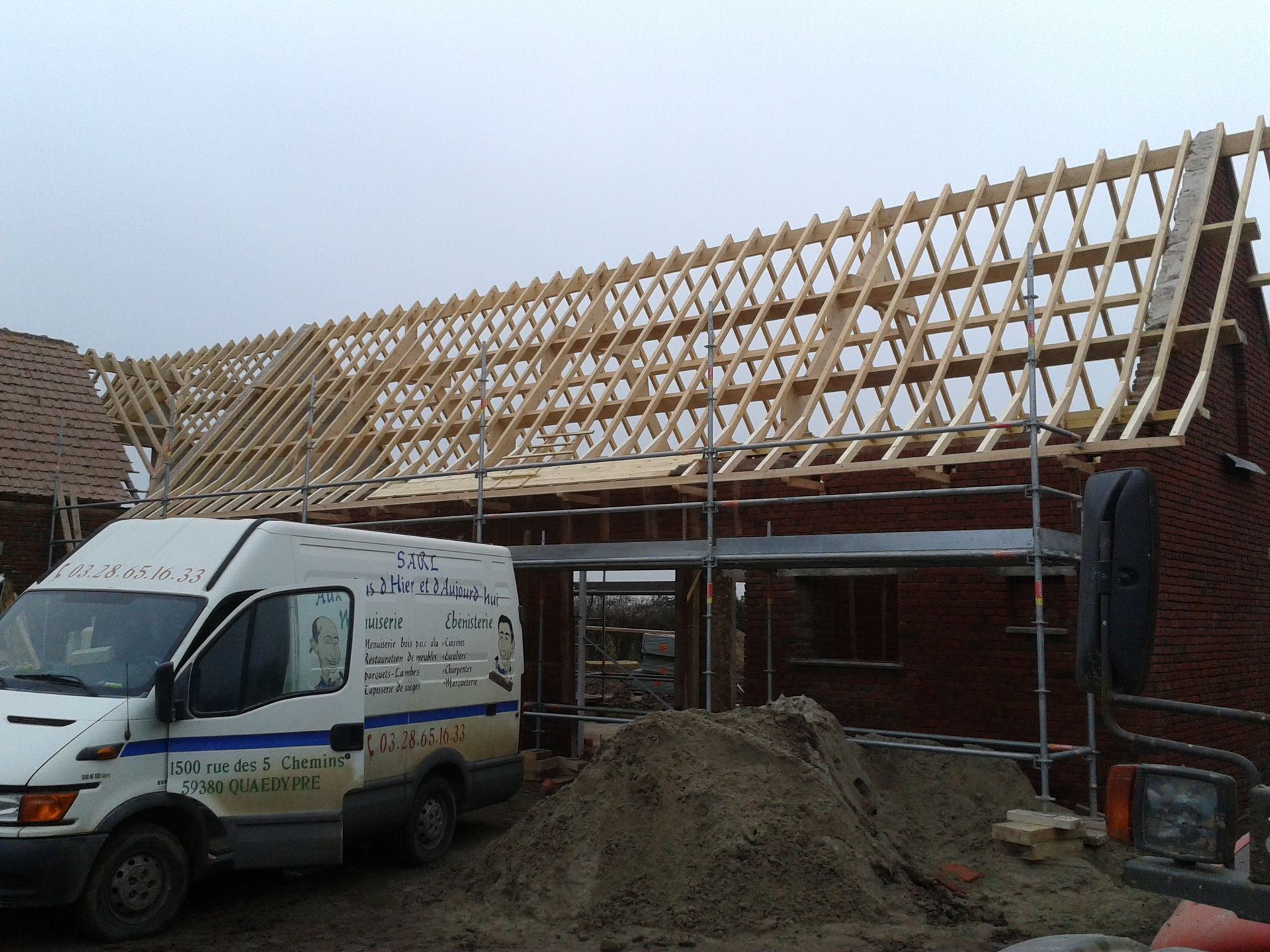 Aux Bois d'Hier et d'Aujourd'hui intervient chez vous pour réaliser la pose de votre charpente traditionnelle ou industrielle. Nos artisans menuisiers mettent tout leur savoir-faire de menuisier à votre service. Ils réalisent eux-mêmes la fabrication de votre charpente dans leur atelier situé à Coudekerque-Branche.